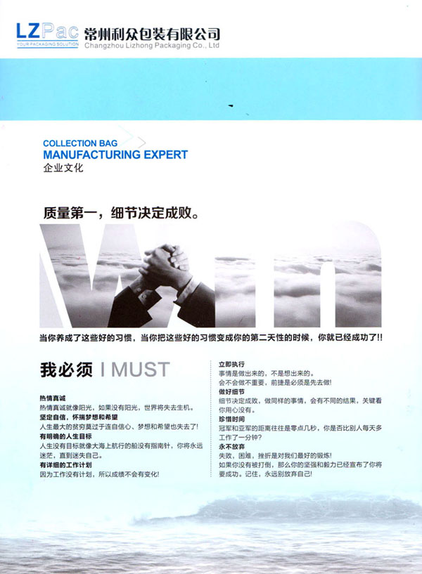 常州利眾包裝有限公司成立于2009年。經(jīng)過10多年的發(fā)展,已發(fā)展成為規(guī)模型的集成袋生產(chǎn)與研發(fā)基地。公司擁有四條拉絲生產(chǎn)線,20余臺各式圓織機、10余臺織帶機,1臺寬幅涂膜機,10余臺自動裁剪機,200多臺各式縫紉設(shè)備,其中電腦縫紉設(shè)備多達40多臺。公司月產(chǎn)各種中高檔集裝袋20萬條左右。 擁有強大的質(zhì)量管理系統(tǒng)。公司成立初期就通過了ISO9001的體系論證。公司奉行“質(zhì)量第一,客戶至上”的經(jīng)營理念,始終堅持以質(zhì)量謀發(fā)展的原則,執(zhí)著追求以新工藝,新設(shè)備,高效率不斷優(yōu)化生產(chǎn)流程,降低生產(chǎn)成本以適應(yīng)市場。常州利眾包裝有限公司地處美麗的江南水鄉(xiāng)——常州。地理位置十分優(yōu)越。 公司主打產(chǎn)品為各種中高端集裝袋。包括各式拉筋袋,導(dǎo)電袋,抗靜電袋。公司客戶清單中包括有很多的國際知名企業(yè),世界500強企業(yè)。 眾包裝——你的包裝解決方案。