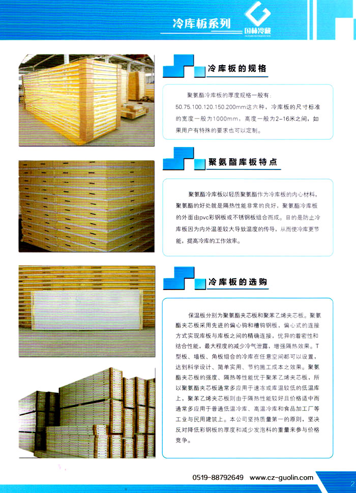 常州市國林冷藏設(shè)備廠(原武進(jìn)長虹冷藏設(shè)備廠)成立于1995年,地處江南水鄉(xiāng)中國富饒的“長江三角洲”中心區(qū)域—江蘇常州,滬寧高速、沿江高速、312國道,交通快捷,即刻到達(dá)。 國林冷庫:公司通過了ISO9001:2000質(zhì)量體系認(rèn)證,國林冷庫多次獲得“江蘇省優(yōu)質(zhì)產(chǎn)品”稱號,全國質(zhì)量服務(wù)AAAAA示范單位,并且是中國食品網(wǎng)、阿里巴巴,空調(diào)制冷誠信通會員企業(yè),并與全國多家設(shè)計(jì)院技術(shù)合作,本廠的誠信服務(wù)獲得了廣大客戶的認(rèn)可。 國林冷庫:中國制冷行業(yè)的十大冷庫制造商之一,中國制冷重要工業(yè)生產(chǎn)基地。本公司***生產(chǎn)保溫庫板及冷庫制冷成套設(shè)備,庫板材料涉及不銹鋼、彩鋼板、玻璃鋼板、保溫聚氨脂板。年產(chǎn)量3000多臺,庫板30多萬平方,歡迎新好客戶前來訂購。 國林制冷:公司始終堅(jiān)持:“質(zhì)量為上,追求品質(zhì)”的生產(chǎn)方針;始終信奉:“客戶為先,服務(wù)為本”的經(jīng)營理念。我們愿同廣大的新老客戶在新的世紀(jì)里,共同發(fā)展,利益雙贏,再創(chuàng)輝煌。 常州市國林冷藏設(shè)備廠***生產(chǎn)7.5公分,10公分,12公分,15公分,20公分的聚氨酯冷庫板,面板包括彩鋼板、不銹鋼板、壓花鋁板等各種板材,各種冷庫半埋門及平移動門,各種鐵排管和鋁排管,價格優(yōu)惠,有需要的可以聯(lián)系我金文燁18761183807
