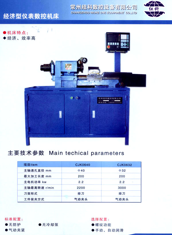 常州紐科數(shù)控設備有限公司位于中國蘇南工業(yè)明星城市——常州!我公司地處常州市東門橫山橋鎮(zhèn),地理位置十分優(yōu)越,緊臨312國道和滬寧高速橫山橋出口。 我公司專業(yè)生產(chǎn)各類數(shù)控機床及各類普通機床的數(shù)控改造業(yè)務,公司自成立以來,緊緊圍繞質(zhì)量,誠信,服務,求市場經(jīng)營理念,產(chǎn)品行銷全國,誠信和質(zhì)量都博得用戶一致好評。 我公司目前主要產(chǎn)品有:C~CJK61 80。C~CJK61 63,CK/C,.IK61 50,CK/C。IK61 40,C~CJK61 32,CK/CJK6432,C~CJK0640,C~CJK0632及CK一32/40斜導軌數(shù)控機床,公司產(chǎn)品不僅可以滿足各企業(yè)產(chǎn)品的批量加工,更是高等院校,中專,技校,職校相關專業(yè)數(shù)控技術實習教學和綜合實驗的理想設備。 我公司有著雄厚的技術力量和制造能力,在數(shù)控機床開發(fā)制造領域。公司擁有一批長期從事相關專業(yè)的高水平工程技術人員。以創(chuàng)新并富有競爭力的產(chǎn)品和專業(yè)服務拓展機床設備市場和機械加工市場。質(zhì)量第一,誠信經(jīng)營,用戶至上,售后最快是常州紐科數(shù)控設備有限公司經(jīng)營宗旨?蛻舻男枨笥肋h是我們追求目標,常州紐科數(shù)控設備有限公司愿和廣大國內(nèi)外客戶攜手并進,共創(chuàng)偉業(yè)。