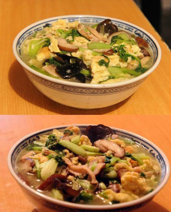 娟娟面館點(diǎn)單率最高的是青菜香菇雞蛋面,一菜一菇一蛋一湯,樸實(shí)無(wú)華,價(jià)廉物美,老少皆宜,久吃不厭,非常適宜我國(guó)人口的營(yíng)養(yǎng)膳食結(jié)構(gòu)。其中小青菜是當(dāng)?shù)剞r(nóng)家的家常菜;雞蛋是當(dāng)?shù)毓麍@散養(yǎng)的母雞所生,味道自然地道純正了。