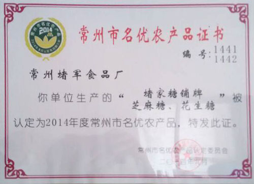 “堵家糖鋪”牌芝麻糖。2013年度生產(chǎn)量已達(dá)100噸左右實(shí)現(xiàn)銷(xiāo)量額為250萬(wàn)元,同時(shí)本廠(chǎng)的產(chǎn)品已進(jìn)入“瑞和泰"“好比家”“名仁”常州機(jī)場(chǎng)等高端銷(xiāo)售區(qū)域,并與“瑞和泰”形成戰(zhàn)略合作伙伴關(guān)系:為瑞和泰貼牌加工生產(chǎn)。 常州堵軍食品廠(chǎng)生產(chǎn)的芝麻糖是以:大米和麥芽用相傳百年歷史的循環(huán)水濾蒸煮法提煉出其中的麥芽糖漿,再用芝麻,花生,桂花,橘皮,面粉為輔料,歷23道工序手工制作而成。它是一種具有營(yíng)養(yǎng)豐富性和抗衰老性食品。富含蛋白質(zhì),脂肪,維生素A,維生素B,鈣鐵鎂,卵磷脂,硫胺素等營(yíng)養(yǎng)元素。 全麥芽芝麻糖是一種獨(dú)具地方特色的大眾性休閑食品。有其獨(dú)特的地方性和文化性。無(wú)論是逢年過(guò)節(jié)還是日常生活都是饋贈(zèng)親友,款待賓客的首選佳品之一。