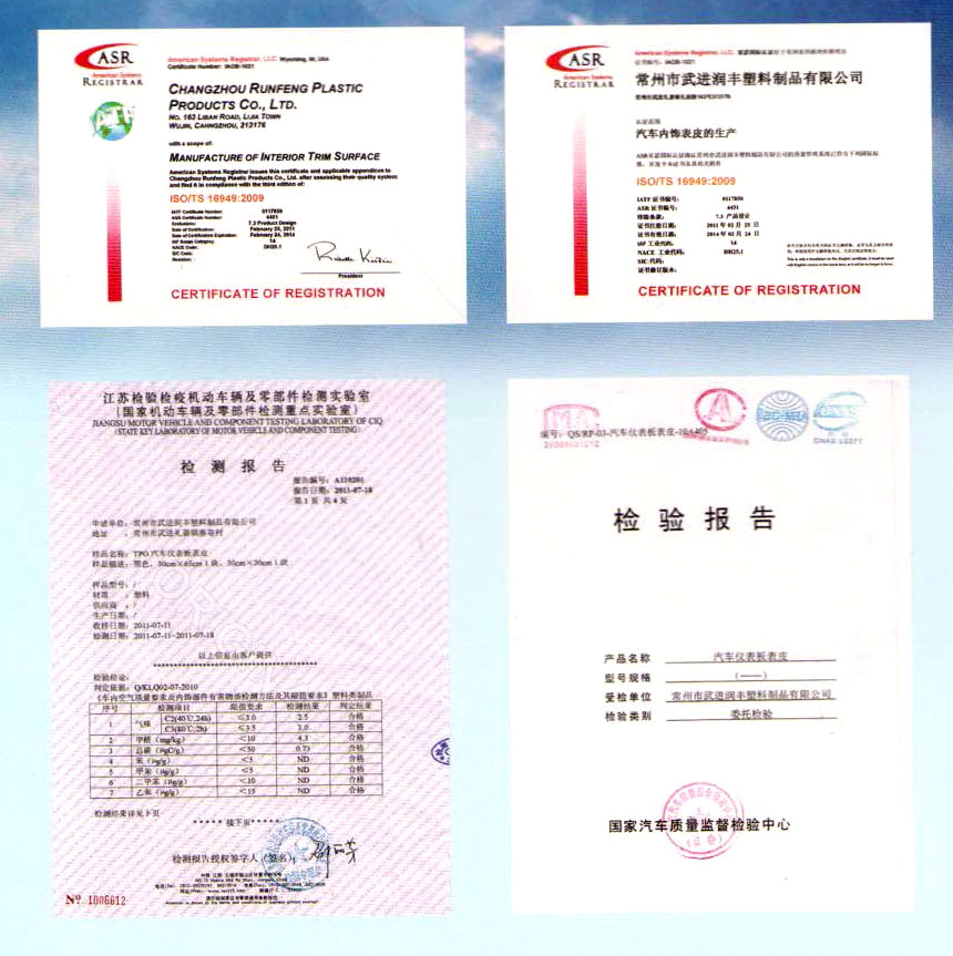 常州市武進(jìn)潤豐塑料制品有限公司地處風(fēng)景美麗經(jīng)濟(jì)發(fā)達(dá)的長江三角洲常州市東郊禮嘉鎮(zhèn),公司占地面積約8000平方米,且地理位置優(yōu)越,是中外客商常涉之地。 本公司專業(yè)生產(chǎn)汽車儀板軟化表皮、PVC門護(hù)板表皮、PVC復(fù)合制品、壓延薄膜制品,(塑料制品除醫(yī)用塑料制品),車輛零部件,機(jī)械電器零部件,電子元件,沖壓件制造,加工無妨制品,玻纖氈(GFP板),麻氈板等。本公司的產(chǎn)品在國內(nèi)一線乘用車上廣泛使用。產(chǎn)品通過國家汽車質(zhì)量監(jiān)督檢驗(yàn)中心檢測(cè),并取得了各種證書,如亞瑟國際認(rèn)證;ISO/TS1694:2009等。 本公司技術(shù)力量雄厚,生產(chǎn)設(shè)備先進(jìn)。多年來,建立了較完善的質(zhì)量管理體系,以先進(jìn)的檢測(cè)技術(shù),優(yōu)質(zhì)的服務(wù)態(tài)度,向客戶提供最優(yōu)秀的產(chǎn)品,在同行中享有良好的聲譽(yù)。 歡迎新老客戶來公司指導(dǎo),洽談,合作。