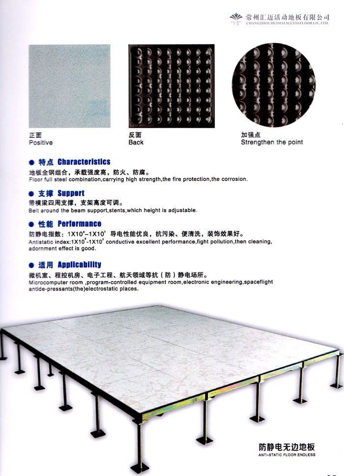 常州匯邁活動(dòng)地板有限公司地處鄉(xiāng)鎮(zhèn)工業(yè)發(fā)達(dá)的江蘇省常州市。北靠滬寧高速公路、東臨上海、交通便利。多年來(lái),公司以其硬朗的產(chǎn)品質(zhì)量.良好的商業(yè)信譽(yù),嚴(yán)格的企業(yè)管理,迅速發(fā)展成為國(guó)內(nèi)生產(chǎn)全鋼活動(dòng)地板的知名企業(yè)。 本公司致力于高新技術(shù)產(chǎn)品開(kāi)發(fā)、生產(chǎn)、研究的綜合性企業(yè):主要生產(chǎn)和經(jīng)營(yíng)防靜電網(wǎng)絡(luò)地板系列.主要包括:陶瓷防靜電活動(dòng)地板、無(wú)邊地板、硫酸鈣防靜電地板、OA網(wǎng)絡(luò)活動(dòng)地板等。公司按照GB6650—86與IS09001 :2000系列質(zhì)量標(biāo)準(zhǔn)化管理和標(biāo)準(zhǔn)化生產(chǎn),以市場(chǎng)為導(dǎo)向.不斷對(duì)現(xiàn)有產(chǎn)品進(jìn)行優(yōu)化、更新,對(duì)生產(chǎn)線進(jìn)行技術(shù)改造,力求減低成本,提高效辜。努力在市場(chǎng)競(jìng)爭(zhēng)中占據(jù)優(yōu)勢(shì)。本公司為中國(guó)信息產(chǎn)業(yè)部認(rèn)證企業(yè).質(zhì)量由國(guó)家信息產(chǎn)業(yè)部防靜電產(chǎn)品質(zhì)量監(jiān)督檢測(cè)中心認(rèn)可。 公司大力發(fā)展國(guó)內(nèi)殛海外銷售業(yè)務(wù),公司采用各種有效的營(yíng)銷手段,向客戶展示了公司及產(chǎn)品的良好形象,多次中標(biāo)國(guó)內(nèi)重點(diǎn)裝飾工程 同時(shí)。公司積極融入全球經(jīng)濟(jì)發(fā)展,積極拓展海外業(yè)務(wù)。 匯邁地板將一如既往,開(kāi)發(fā)和制造一流的產(chǎn)品,吸引和培養(yǎng)一流的人才,擁有和完善一流的服務(wù),建立和發(fā)展一流的形象,迎接新時(shí)代!