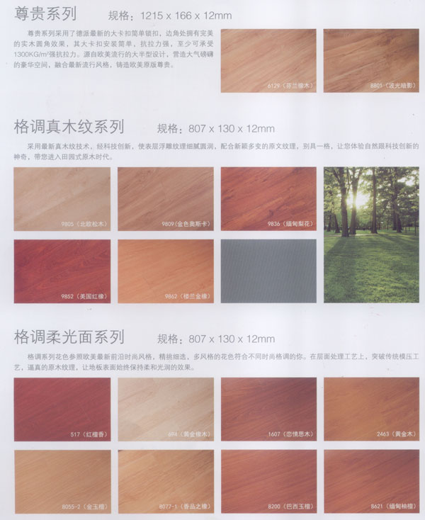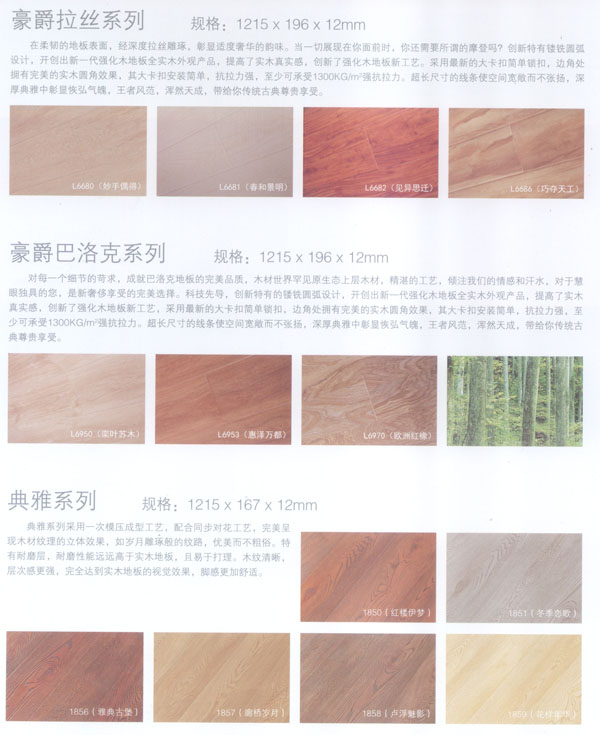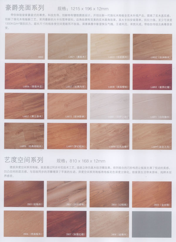 公司生產的地板所選用的材料均為進口或國內上等材料。嚴格的入廠檢驗,不使任何不合格的原材料流入生產環(huán)節(jié),優(yōu)異的生產加工工藝使原材料和精良設備的優(yōu)勢發(fā)揮至及致;嚴格的質量管理體系更使每一流轉環(huán)節(jié)的產品品質一流。每塊出廠的地板都符合比國標更嚴格品質標準。