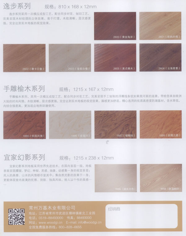 萬基木業(yè)在全國30幾個省市都設有品牌代理商,萬基木業(yè)對所有產品都提供15年品質保證,產品遠銷美國、西班牙、加拿大、土耳其、臺灣等地。歡迎各界朋友前來公司洽談訂購。