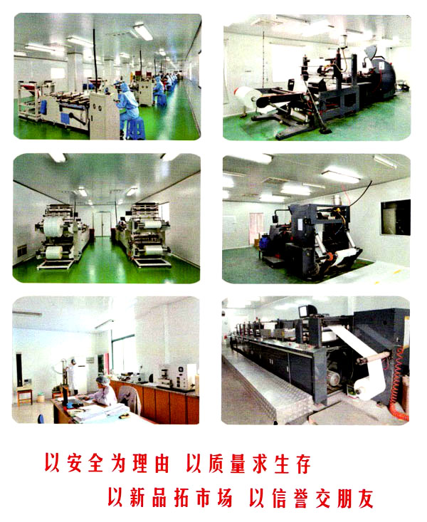 公司現(xiàn)在占地10000平方米,建筑面積6000平方米,擁有了10萬(wàn)級(jí)潔凈車(chē)間700平方米。公司擁有先進(jìn)的大型涂膠生產(chǎn)線和電腦光控分切機(jī)和多功能電腦光控制袋流水線以及多臺(tái)適用印刷多類(lèi)醫(yī)用透析紙的柔性版印刷機(jī),能為客戶提供品質(zhì)卓越的產(chǎn)品(滅菌袋、消毒袋);完備而精密的檢測(cè)檢驗(yàn)儀器和具有執(zhí)行資格的專(zhuān)業(yè)檢驗(yàn)人員為公司的產(chǎn)品質(zhì)量符合國(guó)際標(biāo)準(zhǔn)和國(guó)家標(biāo)準(zhǔn)提供了強(qiáng)有力的保障。