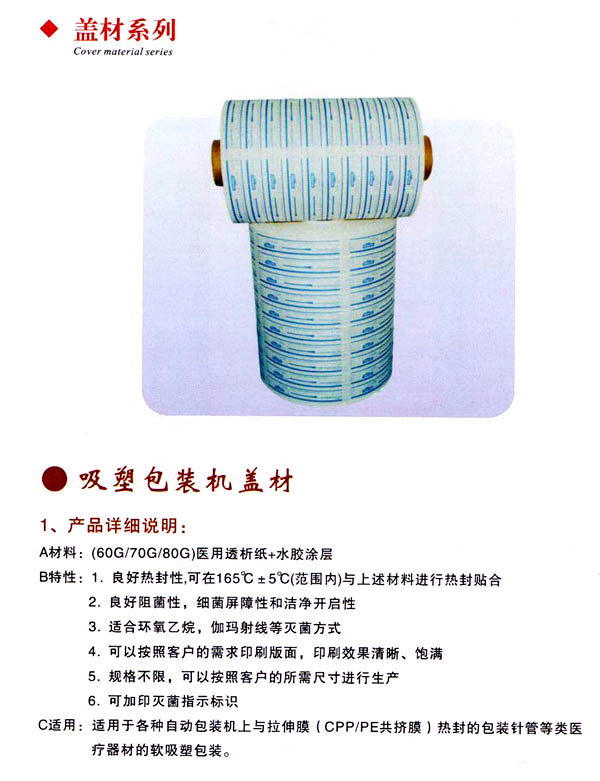 公司能根據(jù)客戶的要求分別生產(chǎn)出適合于環(huán)氧乙烷、輻照和等離子、蒸汽等不同的消毒,滅菌方式的各種規(guī)格的醫(yī)用包裝袋。該產(chǎn)品(滅菌袋、消毒袋)不僅具有良好的熱封效果和干凈完全的剝離效果,同時(shí)更具有單向的細(xì)菌阻隔性和透析性,從而保證了產(chǎn)品的滅菌效果和透析,l生能,贏得了廣大醫(yī)療器械生產(chǎn)生的一致認(rèn)可。