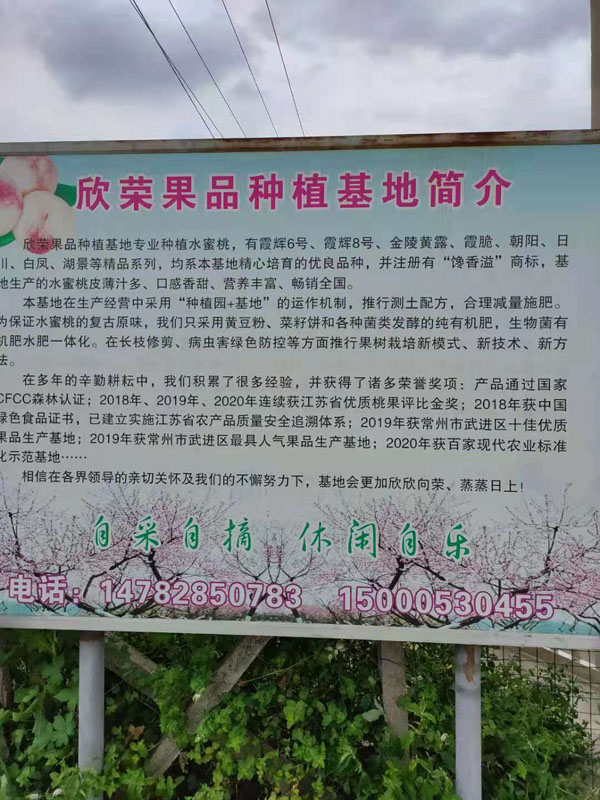 欣榮果品種植基地專業(yè)種植水蜜桃,有霞輝6號、霞輝8號、金陵黃露、霞脆、朝陽、日川、自鳳、湖景等精品系列,均系本基地精心培育的優(yōu)良品種,并注冊有“饞香溢”商標(biāo),基地也生產(chǎn)的水蜜桃皮薄汁多、口感香甜、營養(yǎng)豐富、暢銷全國。 本基地在生產(chǎn)經(jīng)營中采用“種植園+基地”的運(yùn)作機(jī)制,推行測土配方,合理減量施肥。保證水蜜桃的復(fù)古原昧。我們只采用黃豆粉、菜籽餅和各種菌類發(fā)酵的純有機(jī)肥,生物菌有機(jī)肥水肥一體化。在長枝修剪、病蟲害綠色防控等方面推行果樹栽培新模式、新技術(shù)、新方去。 在多年的辛勤耕耘中,我們積累了很多經(jīng)驗,并獲得了諸多榮譽(yù)獎項:產(chǎn)品通過國家CFCC森林認(rèn)證;2018年、2019年、2020年連續(xù)獲江蘇省優(yōu)質(zhì)桃果評比金獎;2018年獲中國綠色食品證書,已建立實(shí)施江蘇省農(nóng)產(chǎn)品質(zhì)量安全追溯體系;2019年獲常州市武進(jìn)區(qū)十佳優(yōu)質(zhì)果品生產(chǎn)基地;2019年獲常州市武進(jìn)區(qū)最具人氣果品生產(chǎn)基地;2020年獲百家現(xiàn)代農(nóng)業(yè)標(biāo)準(zhǔn)化示范基地…… 相信在各界領(lǐng)導(dǎo)的親切關(guān)懷及我們的不懈努力下,基地會更加欣欣向榮、蒸蒸日上!