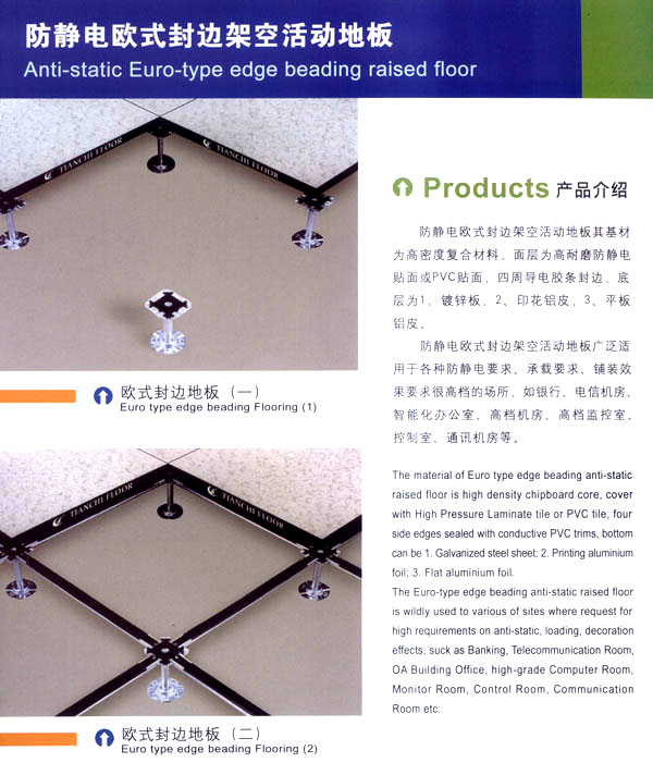 常州天馳活動地板有限公司始創(chuàng)于2010年,原身是常州市武進區(qū)橫林天馳機房地板廠,地處橫林工業(yè)園區(qū),交通便捷。 公司主要生產(chǎn)和銷售各種機房地板,自創(chuàng)立以來,以品質(zhì)第一,信譽第一,服務(wù)第一的理念堅持做全國最優(yōu)質(zhì)量。 防靜電高架活動地板是計算機行業(yè)發(fā)展起來的新型鋪地材料,隔離了潮氣,靜電灰塵。最重要的是解決了綜合布線問題,無需預(yù)埋管線,可隨時拆卸,搬移,保證了資訊設(shè)備完整的優(yōu)點,適應(yīng)了智能化樓宇中信息自動化技術(shù)對所處環(huán)境的特定要求,避免了廣大客戶的雙重投資,使現(xiàn)代化辦公程度更加高效,辦公場所更加舒適。 公司專業(yè)生產(chǎn)“天馳”系列活動地板,符合國家安全要求,種類完備多樣,其中防靜電瓷質(zhì)高架通路地板除具有普通瓷質(zhì)的裝飾和實用性外,其耐磨,防水,防火功能優(yōu)于其他同類產(chǎn)品,深受客戶歡迎。 公司大力發(fā)展國內(nèi)外銷售業(yè)務(wù),多次中標國內(nèi)重點裝飾工程,例:湖南電視臺,寧波縣變電站,鞍山市120急救指揮中心等。 公司將一如既往開發(fā)和制造一流的產(chǎn)品,愿與廣大有識之士合作發(fā)展,共創(chuàng)美好未來!