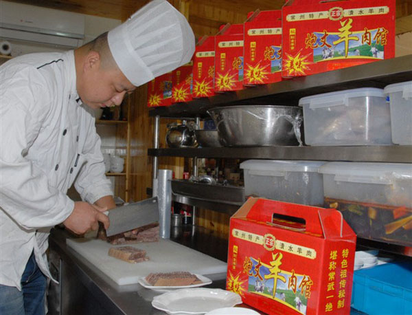 談家的羊肉館用的全是散養(yǎng)了一兩年的公山羊,公羊的收購價比母羊要貴出1/3,但他家還是堅持全部選用未經(jīng)閹割過的公羊,原因是公羊的肌肉結(jié)實,吃起來更香。