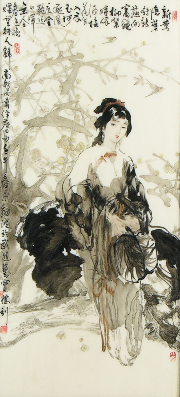 5 牙刻《蕭繹詩意圖》這是一幅充滿詩情畫意離愁別緒的現(xiàn)代水墨牙刻作品。運(yùn)用多種牙刻手法,極盡寫意人物畫之韻味,用刻刀刻出大寫意潑墨、積墨、彩墨以及水淋淋的滋潤感,在作品中得以淋漓盡致的彰現(xiàn)。以簡勝繁,簡而精妙,簡而品高,刀法簡而意境深遂,把少婦春日盼歸人的離愁別緒刻劃得愈加含情脈脈、楚楚動人,給人以無限的遐思,滿腹的風(fēng)情。