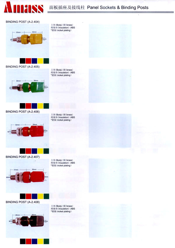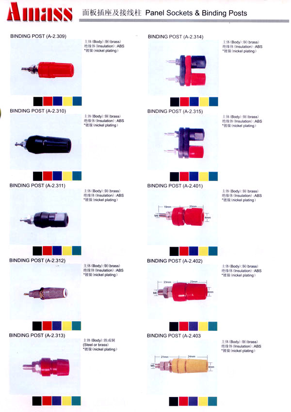 本公司專業(yè)生產(chǎn)各類香蕉插頭,香蕉插座,接線柱,電瓶夾,鱷魚夾,測(cè)試導(dǎo)線,測(cè)試筆等。產(chǎn)品分2mm/2.5mm/3mm/3.5mm/4mm五大系列,百余種款式, 各種香蕉插廣泛用于儀器、儀表、電力測(cè)試、教學(xué)、玩具,視聽設(shè)備、醫(yī)療儀器,保健產(chǎn)品等領(lǐng)域。公司技術(shù)力量雄厚,生產(chǎn)工藝先進(jìn),產(chǎn)品遠(yuǎn)銷港、臺(tái)、歐美,并與飛利浦等國(guó)際品牌配套。公司本著精益求精的理念,歡迎新老客戶光臨。 我們擁有資深的工程師和豐富的電子產(chǎn)品銷售經(jīng)驗(yàn),專業(yè)生產(chǎn)各類電子接插件產(chǎn)品。 香蕉插頭,香蕉插座,電瓶夾,鱷魚夾等品種齊全、 質(zhì)量可靠,致力服務(wù)于通訊、數(shù)據(jù)通信、消費(fèi)類電子產(chǎn)品、計(jì)算機(jī)和計(jì)算機(jī)外圍設(shè)備以及工業(yè)應(yīng)用等領(lǐng)域,能給客戶提供全面采購解決方案。 我們秉承穩(wěn)健作風(fēng)、誠(chéng)實(shí)經(jīng)營(yíng)、合理價(jià)格、完善服務(wù)的宗旨,在全體客戶的支持下,公司不斷創(chuàng)新進(jìn)取,業(yè)績(jī)蒸蒸日上,已與數(shù)十家電子零件制造商及其分支機(jī)構(gòu)建立密切合作關(guān)系,在國(guó)內(nèi)擁有數(shù)百家固定客戶。