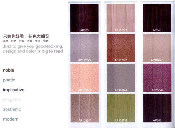 常州愛普裝飾材料有限公司位于美麗富饒的江蘇省常州市,是一家專業(yè)從事墻板設計與生產的企業(yè)。年生產墻板300萬平方米。"愛普墻板"是我公司生產的一種新型墻面裝飾材料,產品由人造金剛石耐磨層、三聚氰胺裝飾紙、EO級HDF材料、高檔防潮平衡紙,采用先進的德國生產設備,通過一流的生產工藝--一次性熱壓技術壓貼成型。具有環(huán)保、耐磨、防刮擦、防潮、阻燃、隔音、保溫、抗沖擊、抗污等優(yōu)點。經中華人民共和國專利認定為 專利產品(專利號:ZL200820127448.X),為國際首創(chuàng),其知識產權受國家法律保護。 愛普墻板經建科院權威部門檢測,其所有物質性能指標均符合國家建材行業(yè)標準,產品遠銷美國、加拿大、澳大利亞、土耳其、俄羅斯、馬來西亞等國家和地區(qū),以其優(yōu)秀的產品與新穎的設計贏得了廣泛贊譽,經歷五年的發(fā)展,愛普裝飾材料公司已成為墻板行業(yè)的領軍企業(yè)。 公司以"開拓、競爭、誠信、服務"的企業(yè)精神,"本著質量第一、用戶第一"的原則,依托先進的工藝裝備、雄厚的技術力量,完善的企業(yè)管理制度,竭誠為用戶提供優(yōu)質的產品與良好的服務。