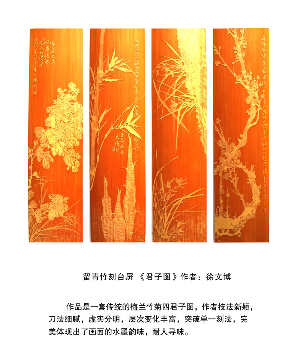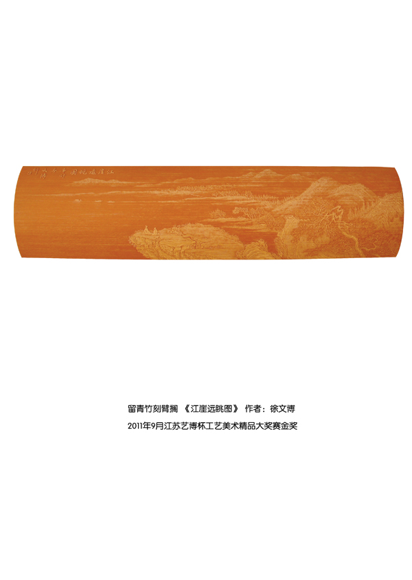 徐博(藝名文博),1973年生,江蘇武進(jìn)人,江蘇省省名人,高級工藝美術(shù)師,常州市留青竹刻非遺傳承人,常州工藝美術(shù)家協(xié)會理事,被譽(yù)為當(dāng)今中國最具創(chuàng)新意識的新銳竹刻家代表,多次獲得國家工藝美術(shù)大獎?釔哿羟嘀窨痰男煳牟┵p竹為樂,以竹詠志,借竹抒懷,悉心探索留青竹刻的藝術(shù)表現(xiàn)。在中國工藝美術(shù)大師蕭劍波的精心指導(dǎo)下,開創(chuàng)留青水墨山水之技法,更好的體現(xiàn)了竹刻淡雅清秀的藝術(shù)風(fēng)格,并不斷汲取書畫、攝影、雕塑等藝術(shù)精華,不斷滋養(yǎng)藝術(shù)情趣,提升擴(kuò)展胸襟人格的同時也逐步形成了其形神兼?zhèn),虛?shí)相生,氣韻生動的藝術(shù)特點(diǎn),作品為眾多的國內(nèi)外收藏家珍藏。