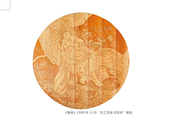 得獎情況 1、扇形擺件《花鳥》2004年9月太湖博覽會金獎 2、《蘭亭序》2008年11月江蘇藝博杯工藝美術(shù)精品獎銀獎 3、《雄風(fēng)圖》2008年11月江蘇藝博杯工藝美術(shù)精品獎創(chuàng)意獎 4、《靜音》2008年11月“天工藝苑•百花杯”中國工藝美術(shù)精品獎銀獎 5、《人物》2008年12月中國收藏藝術(shù)精品博覽會金獎 6、《花鳥》200 8年12月中國收藏藝術(shù)精品博覽會銀獎 7、《青竹鳥語》2008年12月中國收藏藝術(shù)品博覽會“入圍收藏品” 8、《吉祥富貴》2009年3月“金鳳凰”創(chuàng)新產(chǎn)品設(shè)計大獎賽金獎 9、《黃山云海》2009年10月江蘇藝博杯工藝美術(shù)精品獎金獎 10、《花鳥》2009年10月第二屆江蘇旅游商品博覽會最佳產(chǎn)品獎 11、《秋菊圖》2009年11月“天工藝苑•百花杯”中國工藝美術(shù)精品獎銀獎 12、《秋鷹圖》2010年3月“金鳳凰”創(chuàng)新產(chǎn)品設(shè)計大獎賽優(yōu)秀獎 13、《花鳥四屏》2010年3月“金鳳凰”創(chuàng)新產(chǎn)品設(shè)計大獎賽銅獎 14、《荷塘清暑》2010年5月深圳國際文化產(chǎn)業(yè)博覽交易會銅獎 15、《溪山煙云圖》2010年9月江蘇藝博杯工藝美術(shù)精品大獎賽金獎 16、《高士臨風(fēng)圖》2010年10月“天工藝苑•百花杯”中國工藝美術(shù)精品獎銀獎 17、《溪山煙云圖》2010年11月第二屆東方工藝美術(shù)之都博覽會“迎春花獎” 18、《深山尋隱圖》2011年3月“金鳳凰”產(chǎn)品設(shè)計大獎賽銅獎 19、《欣欣向榮》2011年5月深圳國際文化產(chǎn)業(yè)博覽交易會金獎 20、《江崖遠(yuǎn)眺圖》2011年9月江蘇藝博杯工藝美術(shù)精品大獎賽金獎 21、《富春山居圖》2011年10月“天工藝苑•百花杯”中國工藝美術(shù)精品獎金獎 22、《深山訪友》2011年11月中國無錫國際文化藝術(shù)博覽會銀獎 23、《幽谷清音》2012年3月“金鳳凰”創(chuàng)新產(chǎn)品設(shè)計大獎賽銅獎 24、《群芳競艷》2012年10月“儒仕儒家、百花杯”中國工藝美術(shù)精品博覽會金獎 25、《山村渡口圖》2012年12江蘇藝博杯工藝美術(shù)精品大獎賽金獎。 26、《晨妝》2013年4月“金鳳凰”創(chuàng)新產(chǎn)品設(shè)計大獎賽金獎。 27、《和風(fēng)圖》2013年6月中國(青島)工藝美術(shù)博覽會創(chuàng)新產(chǎn)品設(shè)計大賽金獎。 28、《松壑聽泉》2013年9月江蘇藝博杯工藝美術(shù)精品大獎賽銀獎。 29、《君子圖》2013年11月“國信•百花杯”中國工藝美術(shù)精品獎銀獎 30《碧水輕舟》2014年5月深圳國際文化產(chǎn)業(yè)博覽交易會銀獎。 31、《千巖萬壑圖》2014年10月“中國原創(chuàng)•百花杯”中國工藝美術(shù)精品獎金獎 32、《溪山訪友圖》2014年10月江蘇藝博杯工藝美術(shù)精品大獎賽銀獎 33、《深山云壑》2014年12月深圳冬季國際文化產(chǎn)業(yè)博覽交易會金獎 34、《鷹》2015年深圳文化產(chǎn)業(yè)博覽交易會獲“中國工藝美術(shù)文化創(chuàng)意獎”金獎
