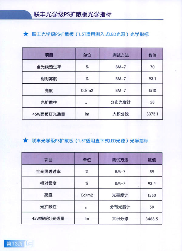 常州市聯(lián)豐(鏡面輥)集團成立于2000年,是國內(nèi)從事板片材行業(yè)輥筒制造的專業(yè)企業(yè)。聯(lián)豐集團全資子公司常州市聯(lián)豐光電科技有限公司成立于2013年6月。聯(lián)豐光電專業(yè)從事光學(xué)級擴散板的研發(fā),生產(chǎn)和銷售。擁有各類高級技術(shù)研發(fā)人員10人,生產(chǎn)、管理及銷售人員60人。公司廠房占地面積2萬平方米,工廠擁有十萬級凈化車間,能有效滿足光學(xué)領(lǐng)域擴散板生產(chǎn)的環(huán)境要求。公司已經(jīng)申報江蘇省高新技術(shù)企業(yè)。 公司現(xiàn)擁有全新進(jìn)口PS專用擴散板材生產(chǎn)線兩條,月生產(chǎn)能力650噸PS擴散板。日本進(jìn)口協(xié)榮裁切一體機兩臺,月加工能力50萬片(32寸擴散板)。 聯(lián)豐生產(chǎn)的VFP系列PS擴散板能廣泛應(yīng)用于直下式LED,CCFL液晶電視背光模組。產(chǎn)品在很多國內(nèi)一線TV的背光模組上使用。產(chǎn)品具有高輝度,高擴散性,特別適用于超薄背光模組的擴散部件,能有效降低成本,節(jié)約能源。 由于LED照明行業(yè)的興起,公司特別針對于LED面板燈和筒燈開發(fā)的LFP系列擴散板,在滿足透光率條件下,能最大限度提高光通量,從而增加燈具的光效,受到廣大客戶的好評。