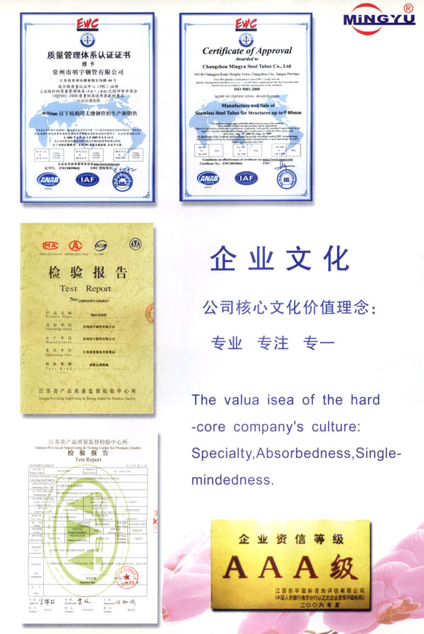 常州市明宇鋼管有限公司位于江南水鄉(xiāng)常州與無(wú)錫之間,緊臨滬寧高速,312國(guó)道,沿江高速,錫宜高速,京杭大運(yùn)河,交通極為方便。 公司創(chuàng)建于1992年,固定資產(chǎn)2500萬(wàn)元,車間面積15000平方米,現(xiàn)有職工220人,技術(shù)員30人,穿孔機(jī)組外徑40-80兩套,冷拔機(jī)組10T-80T八套,輥底式熱處理爐一套,形成年產(chǎn)30000噸各類無(wú)縫鋼管的生產(chǎn)能力。另有半自動(dòng)鋼鋸切割機(jī)八臺(tái),儀表倒角機(jī)18臺(tái),電鍍鋅槽3條,形成從切割、倒角、電鍍的鋼管深加工能力,年產(chǎn)紡機(jī)牽伸管、紗管、編織機(jī)筒管1000萬(wàn)支的生產(chǎn)能力。 集行業(yè)之精華,全新的設(shè)備,完備的檢測(cè)手段,嚴(yán)格的管理措施,良好的服務(wù)宗旨,高素質(zhì)的員工隊(duì)伍,在多年的生產(chǎn)實(shí)踐經(jīng)驗(yàn)基礎(chǔ)上,保障了出廠產(chǎn)品的質(zhì)量,以質(zhì)量求生存,以信譽(yù)求市場(chǎng),以科技求發(fā)展,以價(jià)格求客戶的經(jīng)營(yíng)理念,竭誠(chéng)為社會(huì)各界用戶提供一流服務(wù)。