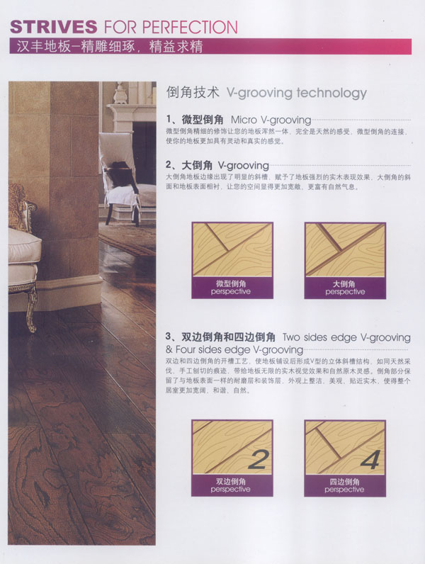 常州漢豐裝飾材料有限公司是一家涉及強化地板制造、屏風鋁材生產(chǎn)、進出口貿(mào)易的大型公司。2001年公司投入重資.全面引進世界頂級一體化自動流水生產(chǎn)線和具有國際先進水準的德國權(quán)威木地板生產(chǎn)技術(shù),興建強化地板生產(chǎn)基地。多年以來.一直不斷加強生產(chǎn)設(shè)備、廠房基礎(chǔ)投入,目前公司年生產(chǎn)強化地板能力已經(jīng)達到了500萬平方米,步入國內(nèi)一流行列,具備了雄厚的國際競爭力。 漢豐地板以奉獻生活中最完美的地板為發(fā)展目標,時尚流行的設(shè)計風格和多樣化的產(chǎn)品類型,贏得了市場的廣泛贊譽和肯定。產(chǎn)品嚴格按照歐洲標準檢測強化木地板的各項性能指標.達到百分百的國際技術(shù)標準,確保了每一塊地板都有著上乘品質(zhì),是綠色環(huán)保的好地板。并先后通過了Isc)9001國際質(zhì)量管理體系認證,IS014001國際環(huán)境管理體系認證.中國環(huán)境標志產(chǎn)品認證,深得用戶的一致好評,是寫字樓、商場、大型超市、學校、建筑樓宇、娛樂場所、家用私宅等鋪裝的首選地板。