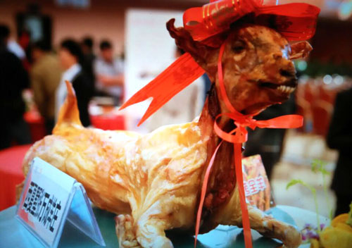 張萬成羊莊一家綜合性的公司,下設(shè)酒店,羊產(chǎn)品加工廠,屠宰廠,山羊養(yǎng)殖場。 酒店位于常州西夏墅浦河村,酒店羊宴規(guī)模占地30畝,酒店主要經(jīng)營特色全羊宴。 一個(gè)祖?zhèn)鞯臍⒀虼髴,傳到張萬成,已是第六代了。張家的羊肉,素來以肉質(zhì)鮮美著稱,張萬成羊莊的主人張建龍是第六代傳人,張家的羊肉素來以肉質(zhì)鮮美著稱,從常州新北區(qū)沿黃河西路往機(jī)場方向直行至羅溪右轉(zhuǎn),穿過滬寧高速高架橋后不遠(yuǎn)處左拐沿翠屏湖路直走便能看到張萬成羊莊,酒店上下共有三層,2000多平方米經(jīng)營面積,能同時(shí)接待近30桌客人的規(guī)模。有自己的羊圈和屠宰場,每天殺20多只,菜式近100道。光是原料,就從原來羊身上的幾個(gè)主要部位,增加到除了羊牙齒以外的一只整羊全部可以入菜。烹制方式,更是在本土單一的燒、炒、煮基礎(chǔ)上,借鑒了東北、廣東、四川等地的烹羊特色,增加了蒸、涮、烤、煎、炸等多種方式。 注重原汁原味的冷菜 白切羊肉:精選羊頸部的活肉精制而成,肥瘦適中,絲毫沒有一般羊肉的膻味,沾少許張萬成羊莊秘制的醬料,口感非常好。 美味羊舌:張家的羊舌感覺是用特殊的醬料腌制過的,咸中略有甜味,口感鮮嫩卻肥而不膩,味道很香。 除了白切羊肉和羊舌以外還有許多冷菜品種,如羊肚、羊心、羊耳朵等。。 火候控制精準(zhǔn)的炒菜 炒羊肝:地道的農(nóng)家風(fēng)味,與大蒜葉同炒,蒜香濃郁,羊肝鮮嫩,這羊肝可是火候菜,羊肝鮮嫩與否不但取決于廚師對火候的掌握,還在于上桌放置時(shí)間的長短,所以羊肝上桌后要盡快食用,看羊肝是否鮮嫩,只需用筷子挑起并輕輕抖動,有彈性者為佳。 美味羊?qū)殻阂跃曼S、鮑味菇爆炒的羊?qū),說是滋補(bǔ)壯陽的一道金貴菜,配料講究的燒菜系列 宮廷燴羊肚:較為金貴的菜品,配菜貴于主料,是以名貴的素鮑和新鮮的筍絲與羊肚同煮,口感濃郁,營養(yǎng)豐富。 海參白燒羊肉:將取自7個(gè)月大羔羊身上的帶皮腿肉與海參一同煨煮,菜肴美容滋補(bǔ),兩種鮮味互相補(bǔ)益達(dá)到完美交融狀態(tài),口感甚佳。 魚羊鮮:新鮮的青魚配上羊肉,既有本地羊肉的肥嫩,又有魚肉的鮮香,鮮!鮮!古代人造字就是有道理!”店里可以根據(jù)客人的需要配以魚回魚、鯰魚、鱖魚等。 特色的羊宴點(diǎn)心 羊肉餛飩:羊莊老板自創(chuàng)的羊宴點(diǎn)心,看似普通的油燜跑蛋卻另有乾坤,將蛋掀開便能看見藏于其中的羊肉菜餡餛飩,菜和肉都是自家新鮮的原料,很好吃。 手工搟面:不知道是因?yàn)槊媸钦嬲檬止{制還是因?yàn)榧尤肓缩r味十足的羊湯,總之味道非常好,面勁道,湯也鮮美! 張萬成羊莊的羊湯也是遠(yuǎn)近聞名,因?yàn)槭亲鎮(zhèn)鞯氖炙,做出來的羊湯不腥不膻,香醇不膩,味道十分鮮美,加入粉絲或者面條更是難得的美味。