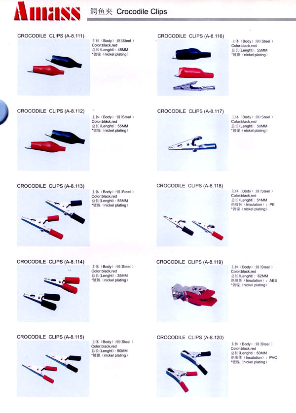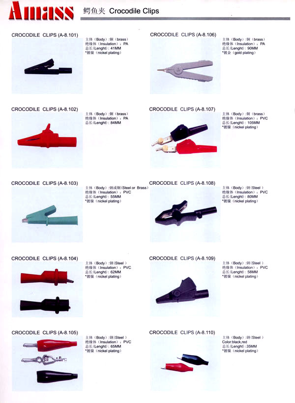 本公司專業(yè)生產(chǎn)各類香蕉插頭,香蕉插座,接線柱,電瓶夾,鱷魚夾,測試導(dǎo)線,測試筆等。產(chǎn)品分2mm/2.5mm/3mm/3.5mm/4mm五大系列,百余種款式, 各種香蕉插廣泛用于儀器、儀表、電力測試、教學(xué)、玩具,視聽設(shè)備、醫(yī)療儀器,保健產(chǎn)品等領(lǐng)域。公司技術(shù)力量雄厚,生產(chǎn)工藝先進(jìn),產(chǎn)品遠(yuǎn)銷港、臺(tái)、歐美,并與飛利浦等國際品牌配套。公司本著精益求精的理念,歡迎新老客戶光臨。 我們擁有資深的工程師和豐富的電子產(chǎn)品銷售經(jīng)驗(yàn),專業(yè)生產(chǎn)各類電子接插件產(chǎn)品。 香蕉插頭,香蕉插座,電瓶夾,鱷魚夾等品種齊全、 質(zhì)量可靠,致力服務(wù)于通訊、數(shù)據(jù)通信、消費(fèi)類電子產(chǎn)品、計(jì)算機(jī)和計(jì)算機(jī)外圍設(shè)備以及工業(yè)應(yīng)用等領(lǐng)域,能給客戶提供全面采購解決方案。 我們秉承穩(wěn)健作風(fēng)、誠實(shí)經(jīng)營、合理價(jià)格、完善服務(wù)的宗旨,在全體客戶的支持下,公司不斷創(chuàng)新進(jìn)取,業(yè)績蒸蒸日上,已與數(shù)十家電子零件制造商及其分支機(jī)構(gòu)建立密切合作關(guān)系,在國內(nèi)擁有數(shù)百家固定客戶。
