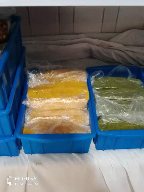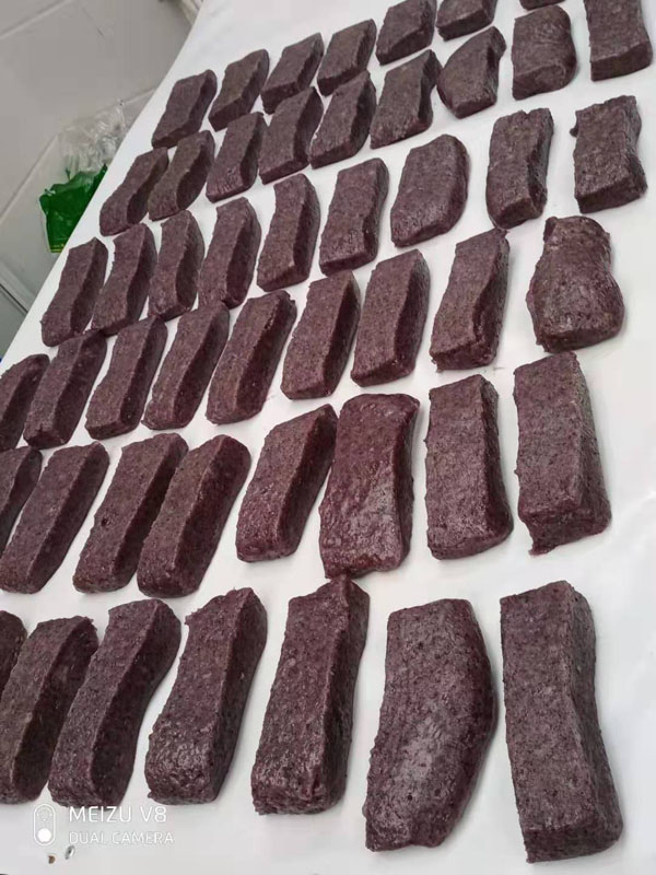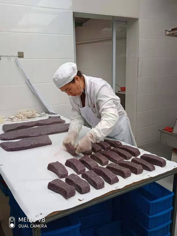 腳踏糕本名“年糕”,按常州周邊地區(qū)的風(fēng)俗習(xí)慣,在春季前夕,各家各戶都要蒸年糕,吃年糕!案狻敝C音“高”,過年吃年糕被賜予“年年高”,一年高一年,鋒吉祥之意,表達(dá)這人們對(duì)未來美好生活的憧憬和良好的祝愿。今天小編要帶大家的就是一家至今保持著傳統(tǒng)手工制作的鈺鋒糕點(diǎn)坊。 鈺鋒糕點(diǎn)坊位于常州鄭陸鎮(zhèn)三皇廟范家莊,一個(gè)比較偏僻的村莊,雖然這家作坊不大,但香糯絲滑,軟糯適中,韌勁十足的腳踏糕吸引了無數(shù)的食客。制作一條腳踏糕要從淘米,浸泡,碾粉,鋪粉,一層一層的鋪下去,需要無數(shù)道制作工序,這些都是店主孫煥公公老周,憑著幾十年的經(jīng)驗(yàn),加上店主孫煥從不馬虎的決心! 這“腳踏”也并非赤腳上陣,而是把蒸好的糕倒入早以準(zhǔn)備好的框子里,用布包裹好,上面再用薄膜包好,再蓋上布,再換上專門腳踏的布鞋,踩的時(shí)候要?jiǎng)蚍Q,左右腳要配合好,不然糕會(huì)高高低低,不平整,最后再拿蠟燭線拆成一條小長條,再拿帶包裝好,如此又香又糯的腳踏糕就大功告成了。 店主孫煥為了讓更多的人認(rèn)識(shí)和了解常州腳踏糕的傳統(tǒng)文化和美食,她在傳統(tǒng)工藝中增加了適合現(xiàn)代文化的多種口味,她在糕里加入南瓜,紫薯,老紅糖,大麥汁,血糯米,核桃,葡萄干,紅棗等食材,做出五顏六色,純天然的口味,深受食客們的喜愛,不管是送人還是自己吃都非常新穎。 (重陽糕)重陽糕的由來,九九重陽,九是陽數(shù),也是陽數(shù)中最大的數(shù),九月初九,兩九相重,為之重陽,古人有重陽登高的習(xí)俗。高于糕同意,寓意人活九十九,生活步步高,秋景勝春光,夕陽無限好。夕陽紅成了老人對(duì)自己美好的祝愿和希望,所以從某種意義上來講它“祝壽糕”“長壽糕”重陽糕在常州地區(qū)是家喻戶曉的,下面小編帶你去一家至今保持傳統(tǒng)手工制作的鈺鋒糕點(diǎn)坊看一下吧。鈺鋒糕點(diǎn)坊位于常州市天寧區(qū)鄭陸鎮(zhèn)三皇廟范家莊,偏僻的小村莊,雖然有點(diǎn)偏僻,但是每到重陽節(jié)到來,每天還是有很多食客來訂購和購買店主孫煥做的多種口味的重陽糕。要想做出松軟香糯的重陽糕,原材料和糯米和梗米的配比也很重要,調(diào)整好比例開始淘米,浸泡,釓粉,放入糖攪拌,篩粉,糕底部放上荷葉,中間的餡心都是孫煥自己熬制,口感,香糯松軟,店主孫煥為了吸引更多現(xiàn)代年輕人,她在粉里加入南瓜,紫薯,紅糖,血糯等,色彩搭配很出跳,吸引來了很多食客,孫煥2019年開始自愿捐贈(zèng)重陽糕給敬老院,她說這樣的公益活動(dòng)自己很喜歡,雖然金額不大,缺表達(dá)了她的一份心意,并稱這樣的公益活動(dòng)她每年都會(huì)做。